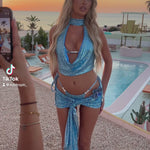 The perfect Ibiza outfit doesnt exis.. multiple outfits in one bundle.  Includes a bikini top, cheeky bikini bottoms paired with sequin cowl neck top & skirt.