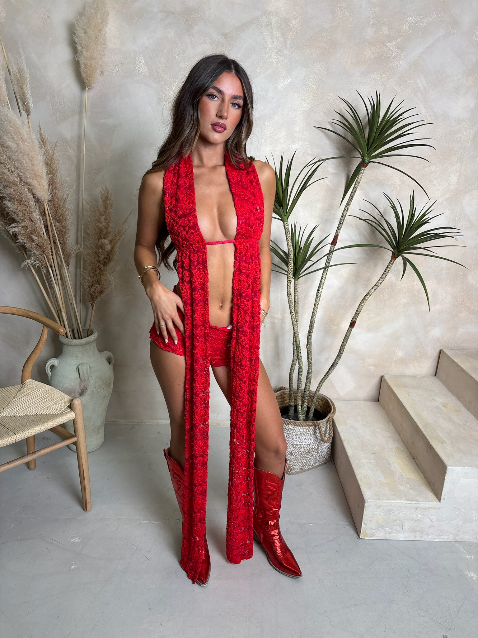 Cherry Red Lace - Top & Shorts