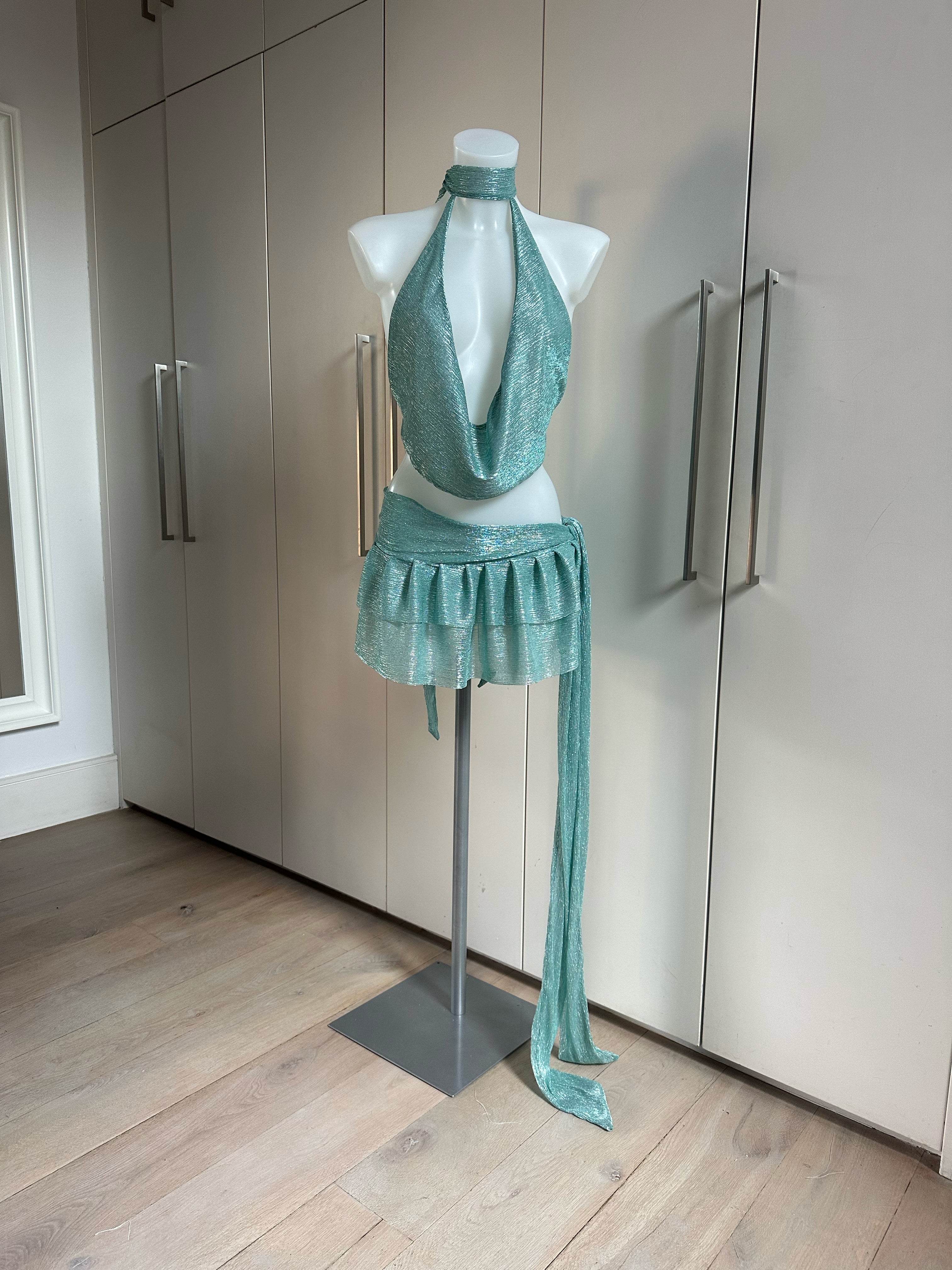 Living out all your aquamarine fantasies with this set. This listing Includes a sheer mint metallic co ord.
