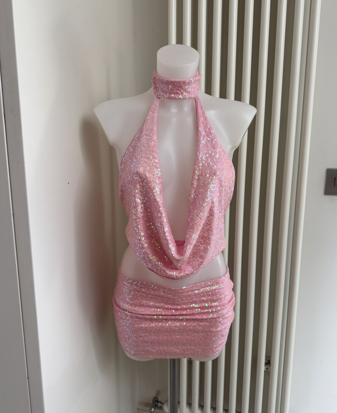 Sequin Cowl Neck Top & Skirt (No Bikini)
