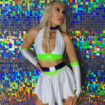 To infinity & beyond, the other half of the iconic duo, Buzz Lightyear! This set includes three pieces - top, skirt & arm sleeves. It also includes a free matching choker.